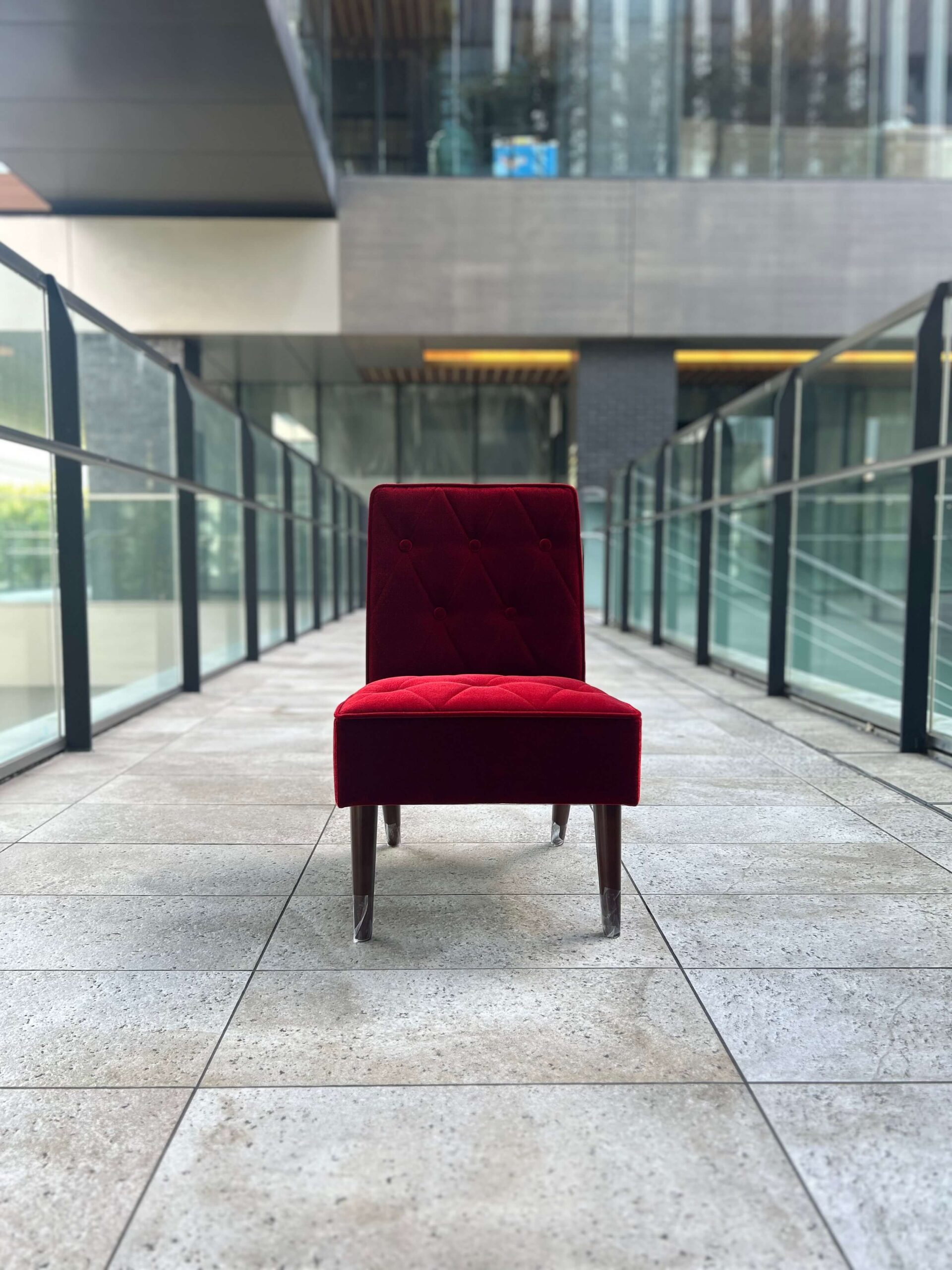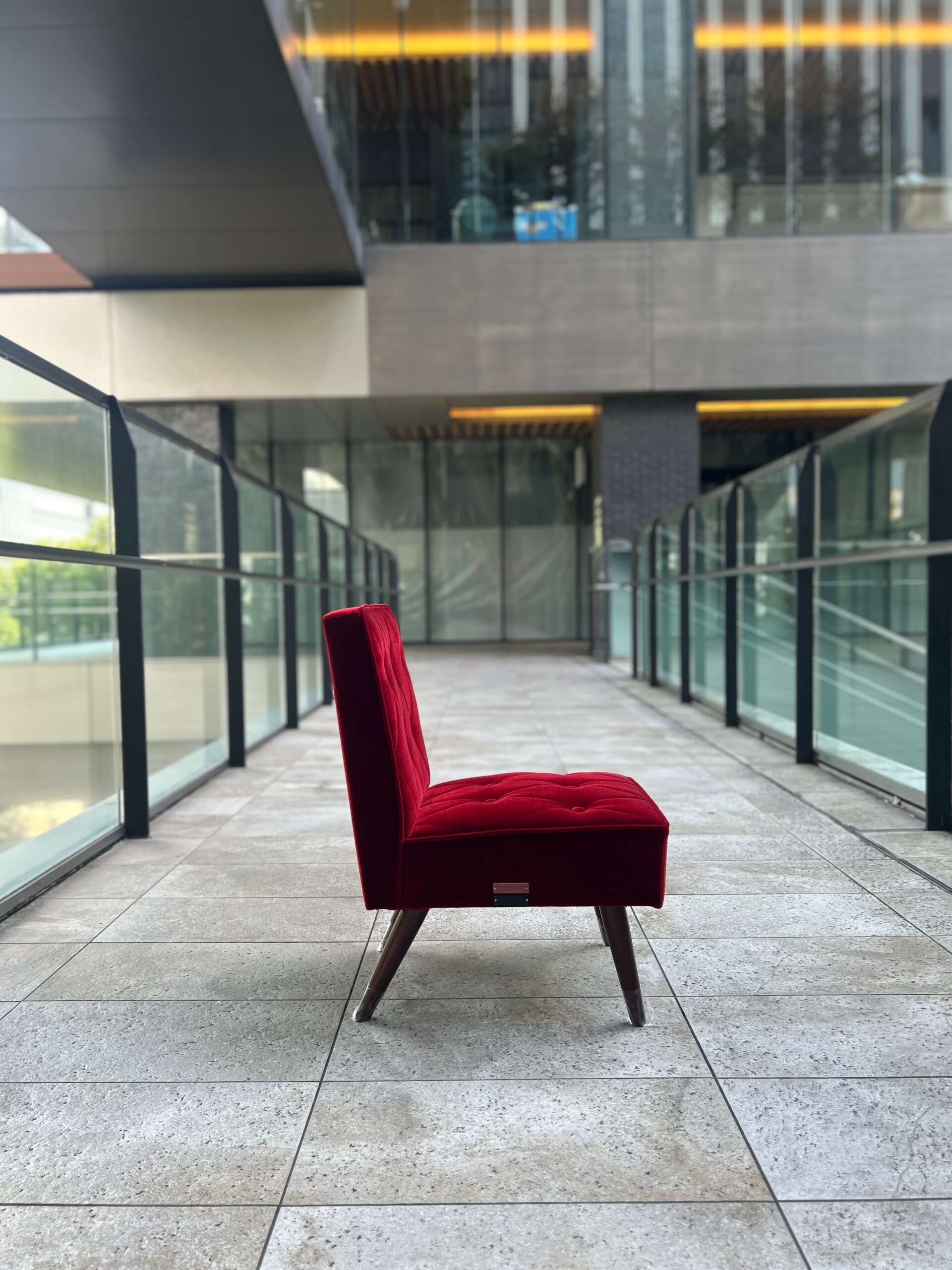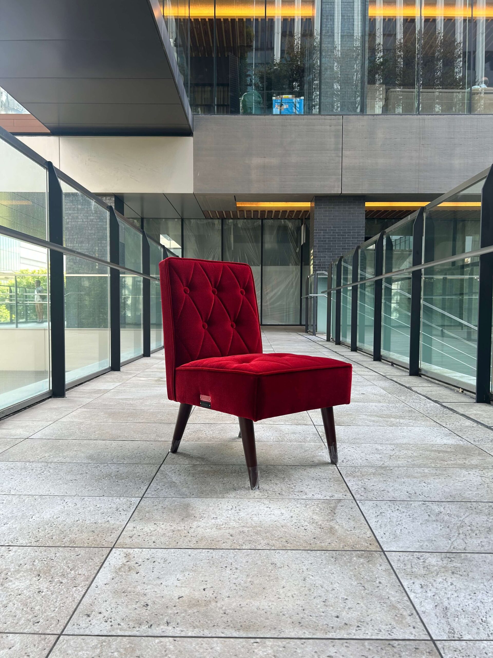 渋い赤なのでインテリアに馴染やすく、座った人、置いた部屋を更に素敵にしてくれる。