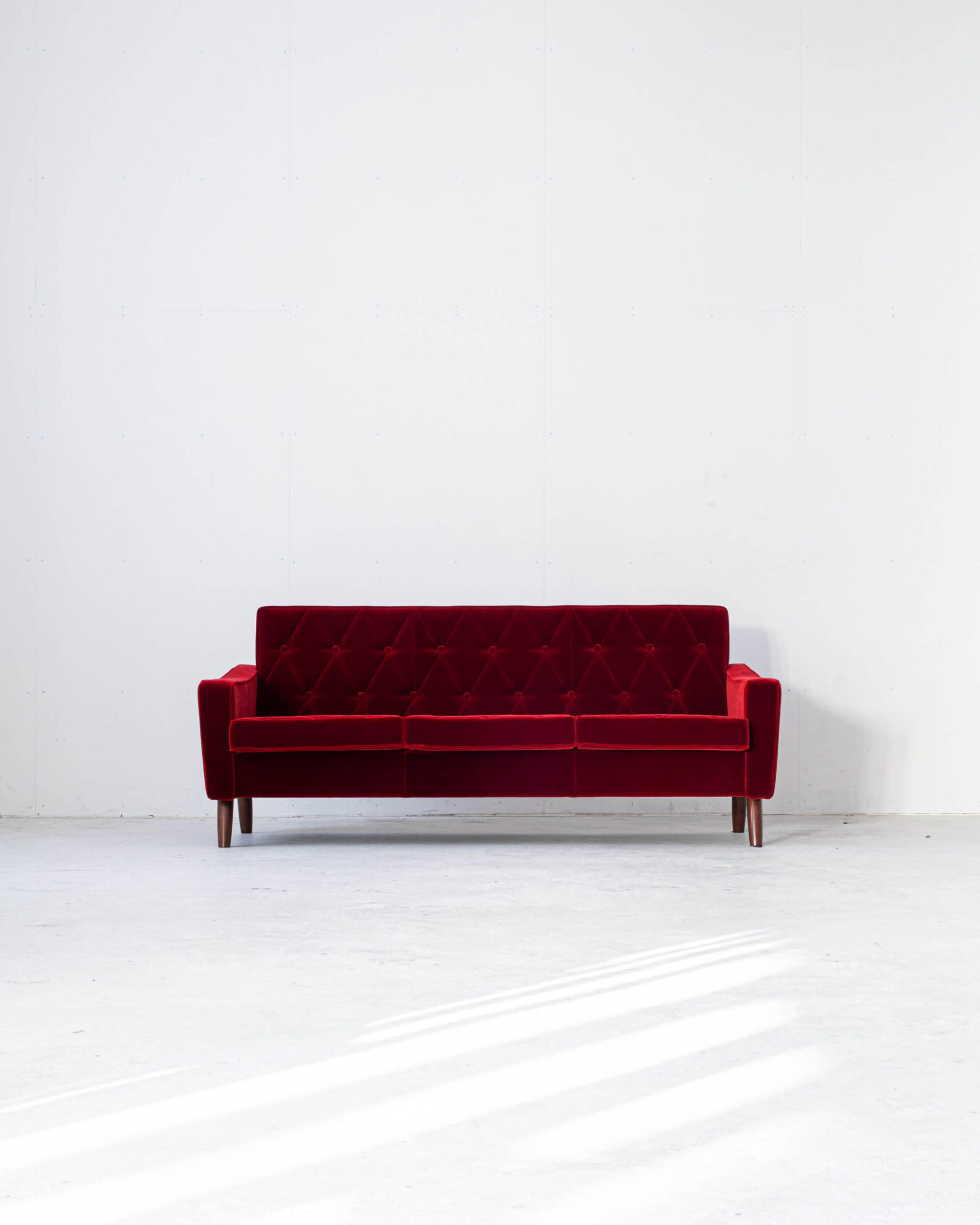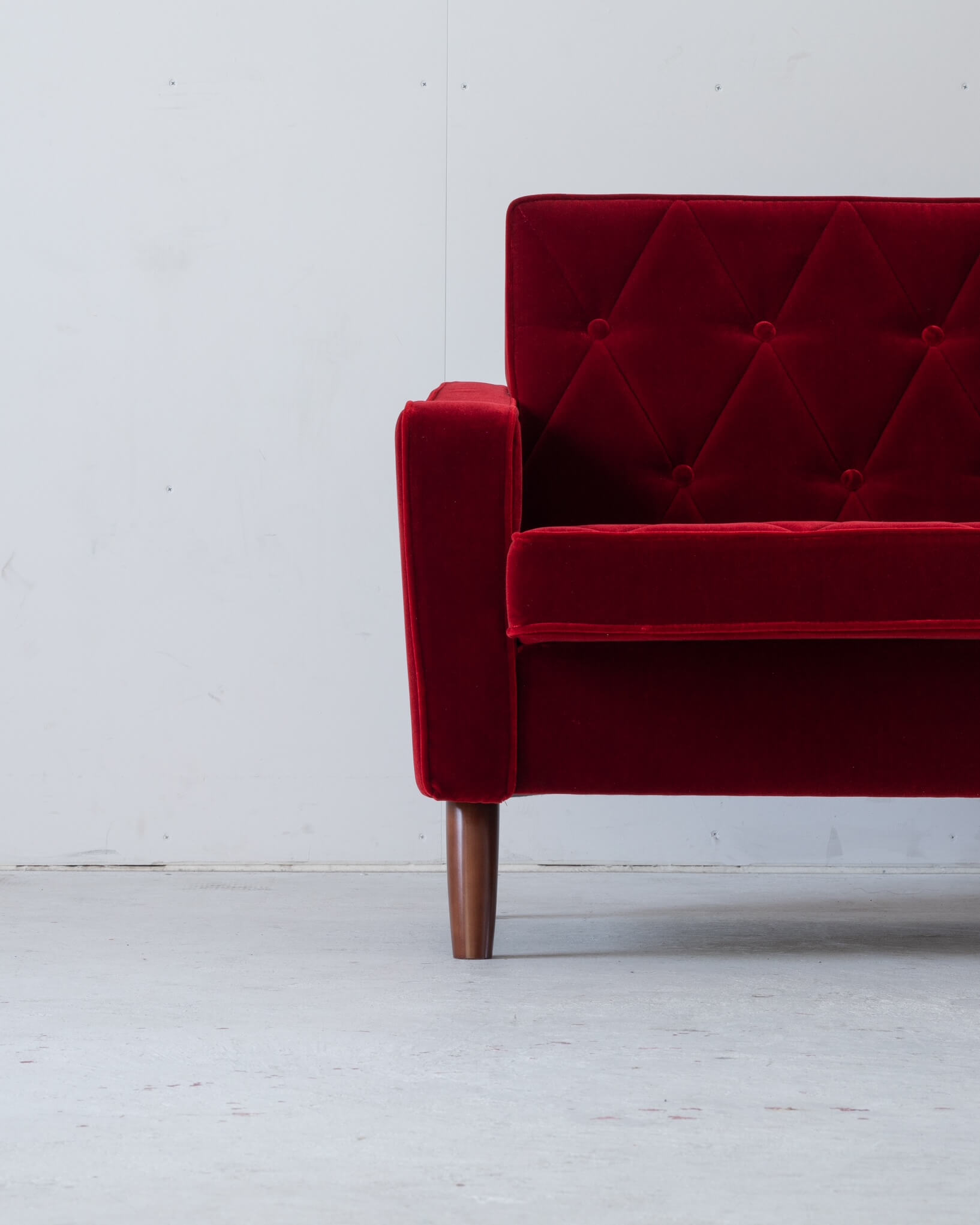 渋い赤なのでインテリアに馴染やすく、座った人、置いた部屋を更に素敵にしてくれる。